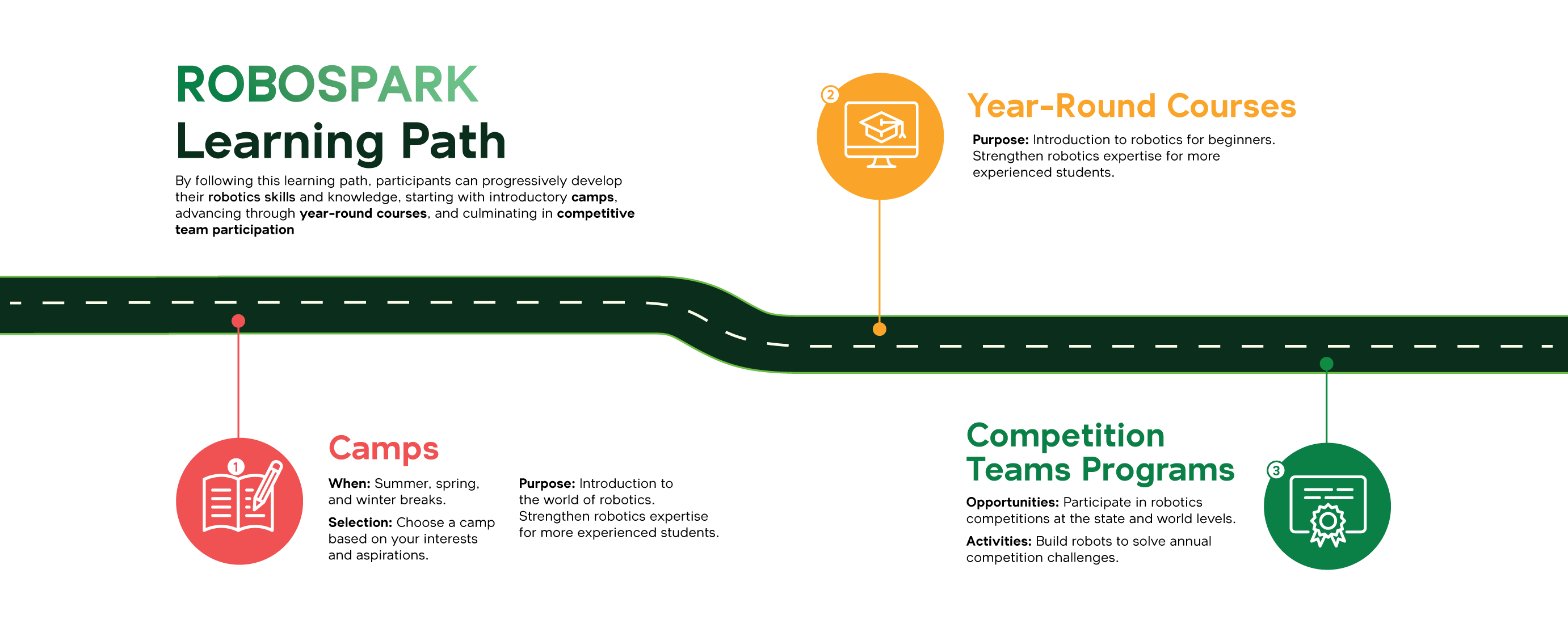 Robospark was founded by the visionaries behind CuriousRobots.org, a renowned robotics program celebrated for its track record of producing top-performing VEX Competition teams. Drawing upon their extensive expertise in the tech industry and six years of coaching robotics teams, our founders have meticulously crafted a curriculum that seamlessly blends challenge with enjoyment. Our commitment is to ensure that students are continuously engaged and motivated as they embark on their educational journey with us.